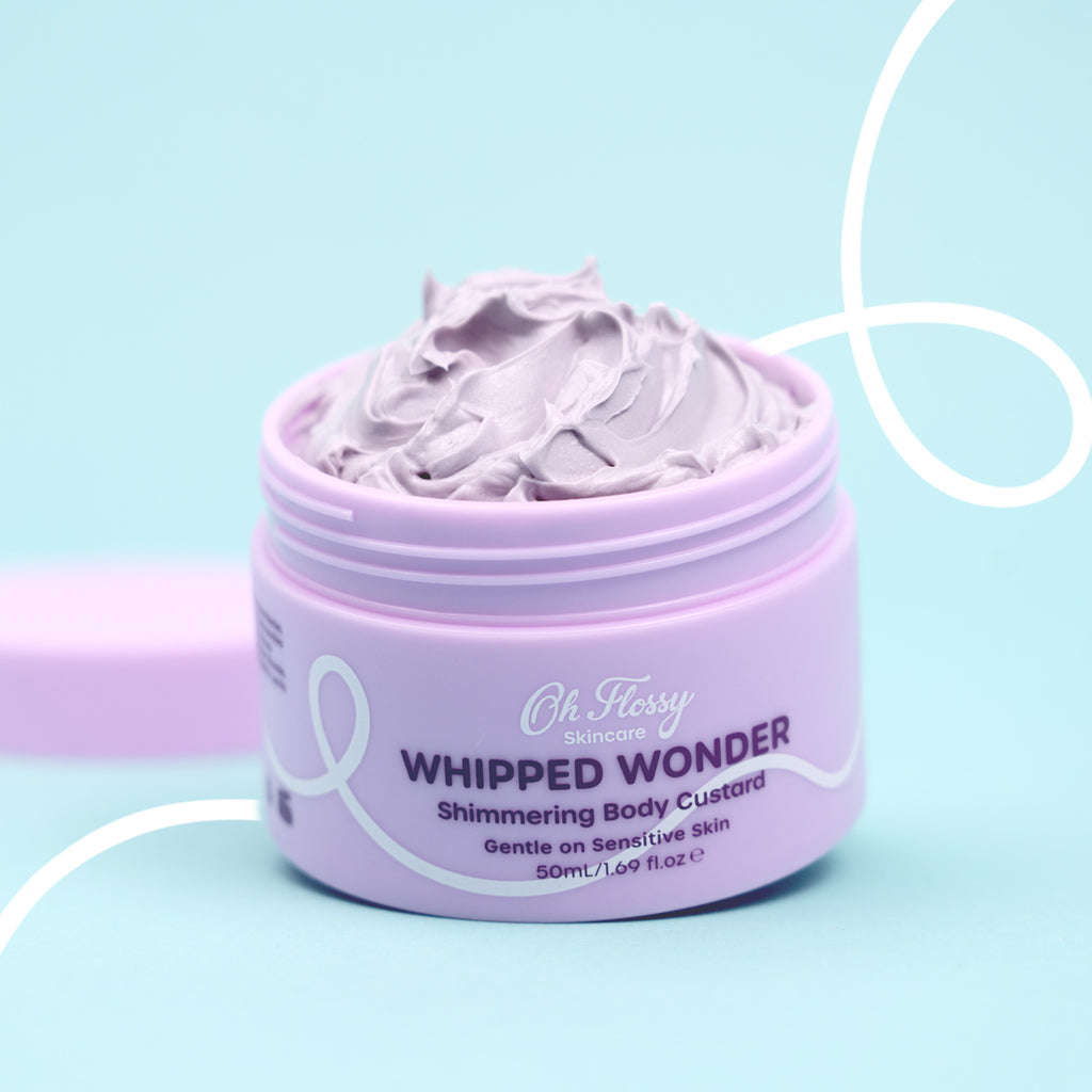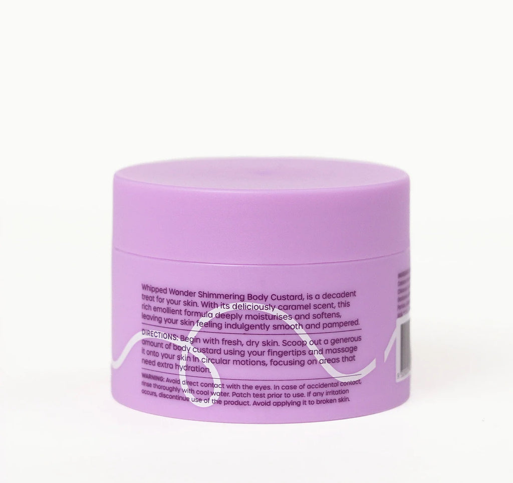 100ml Whipped Wonder Shimmering Body Custard infused with cocoa butter for silky-smooth skin.
