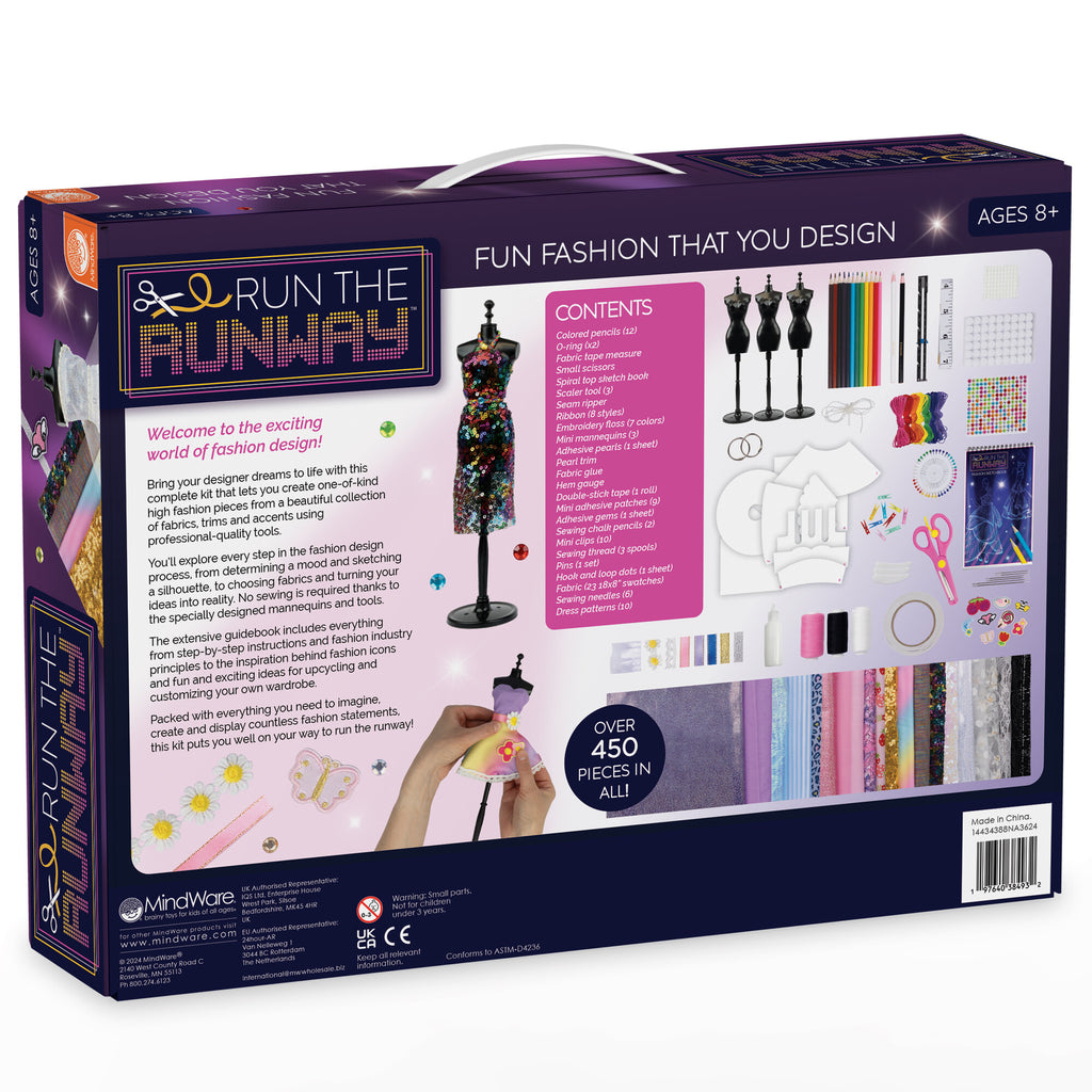 • Transform into a fashion designer with this jam-packed creative studio! Armed with over 450 fabrics, a sketchbook, and 10 ready-to-use patterns, you'll master real design techniques like sketching, layering, and mood boarding. The treasure trove of tools—from colored pencils and sewing supplies to mini mannequins and decorative trims—gives you everything needed to bring your boldest fashion visions to life. Whether you're adding embroidery floss flourishes or styling your creations on the included models, this comprehensive kit makes learning fashion design fun, hands-on, and endlessly creative.